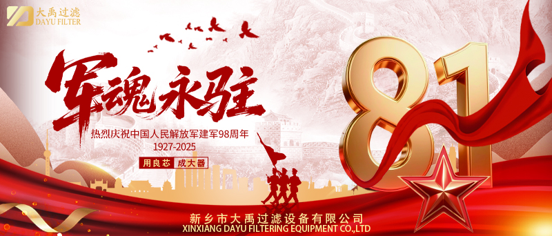 建軍節(jié)不僅是軍人的節(jié)日,更是全社會學(xué)習(xí)軍人精神、凝聚奮進力量的時刻。新鄉(xiāng)市大禹過濾設(shè)備有限公司將以軍人般的堅韌與執(zhí)著,持續(xù)以“良芯”鑄就精品,為全球工業(yè)高質(zhì)量發(fā)展貢獻“中國芯”力量。未來,公司將繼續(xù)以客戶需求為導(dǎo)向,以技術(shù)創(chuàng)新為引擎,在過濾領(lǐng)域書寫新的輝煌篇章!